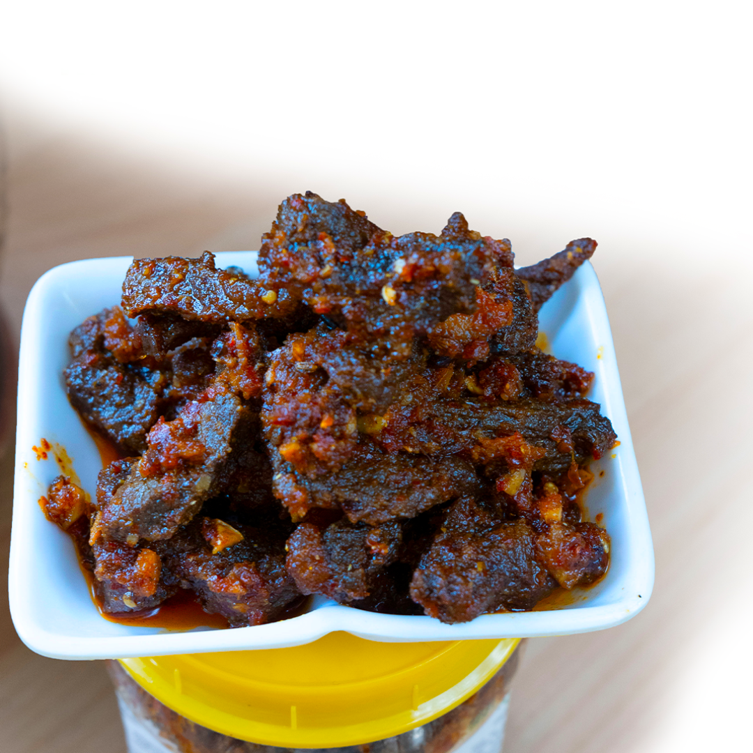 Ingredients: Homemade Buff Sukuti, Ginger, Garlic, Red Chilly Powder, Mustard Seed, Fenugreek Seeds, Cumin Powder, Lemon Juice, Vinegar, Szechuan Pepper, Homemade Spices & Mustard Oil.